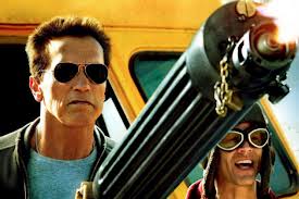 Of course it’s never wise to underestimate Arnie when he’s billed above the title. He has a way of evening the odds. Which he does when a Mexican drug lord escapes FBI custody and makes for the border in a supersonic Corvette. Standing between the cartel boss and freedom is the piss-ant town of Sommerton, Arnie’s town.
