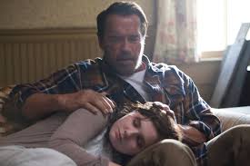 conic but loving father who’s determined to see his teen-age daughter through the final stages of a disease that, in six to eight weeks, will turn her into a flesh-munching zombie. The action unfolds on a remote farm somewhere in the Midwest. TV reports provide gloomy context: a necro-ambulist virus somehow linked to the crops has taken hold in the not-too-distant future and the outlook for those bitten by the infected is not good. In the final stages, as their skin begins to shrivel and rot, they’re quarantined and subjected to a slow, excruciating death.