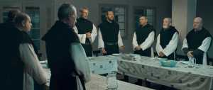 This unilateral pronouncement causes a schism. How dare Christian speak for everyone. Had they been consulted, says Celestin (Philippe Laudenbach) and the visibly nervous Christophe (Olivier Rabourdin), they might have responded differently. They didn’t join the order to be martyred.